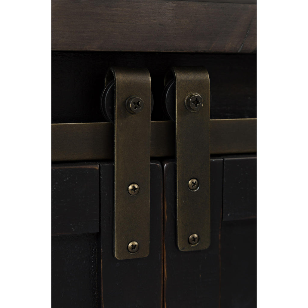 • Adjustable shelf behind sliding barn doors