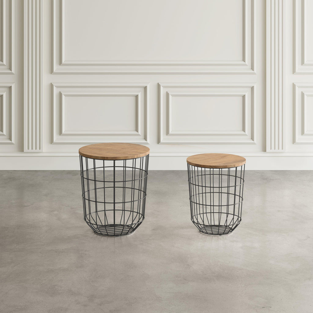 • Second Table: Overall: 15" W x 15" L x 18" H, Base: 10" Diameter, Interior Height: 16.5"