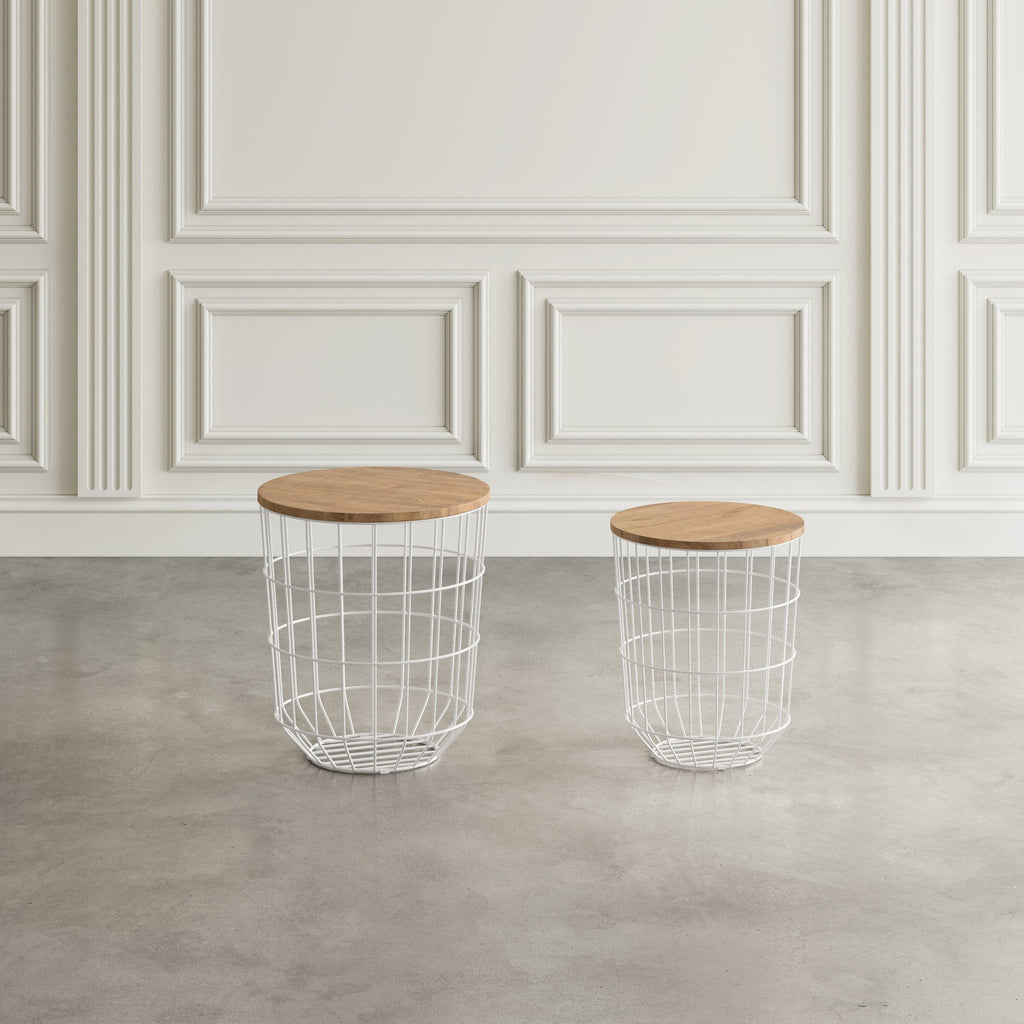 • Second Table: Overall: 15" W x 15" L x 18" H, Base: 10" Diameter, Interior Height: 16.5"