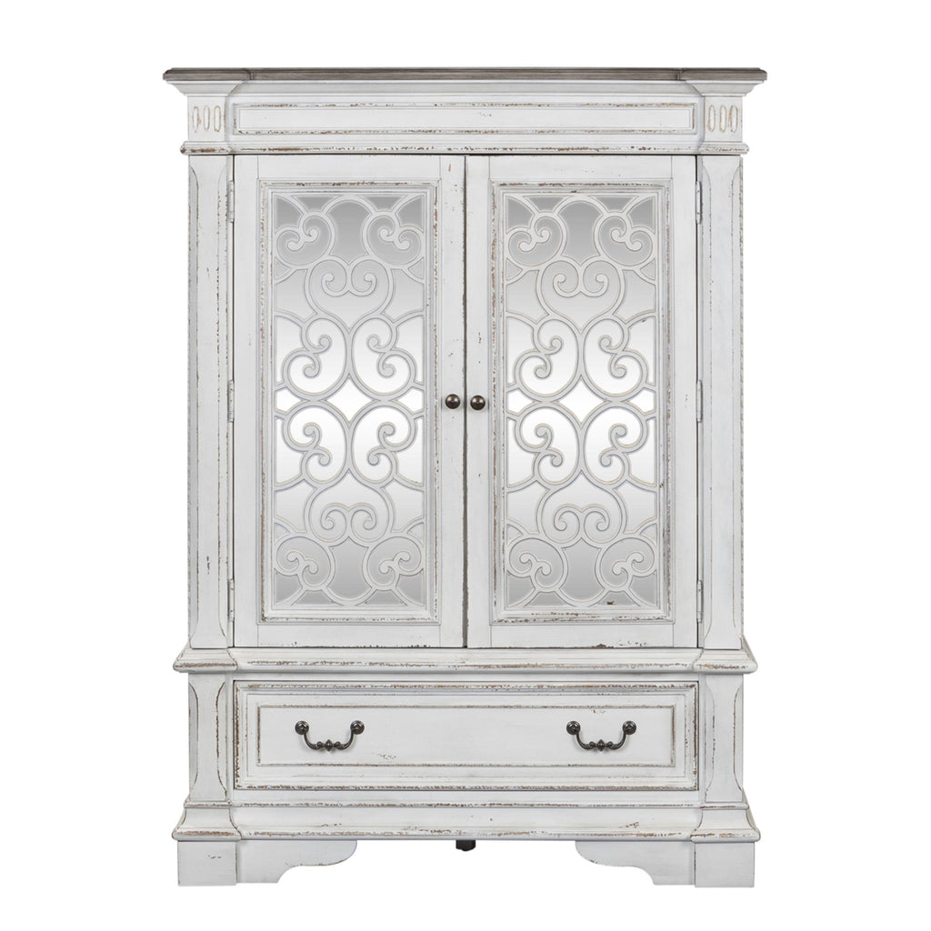 • Antique mirrored panels w/ grid overlay