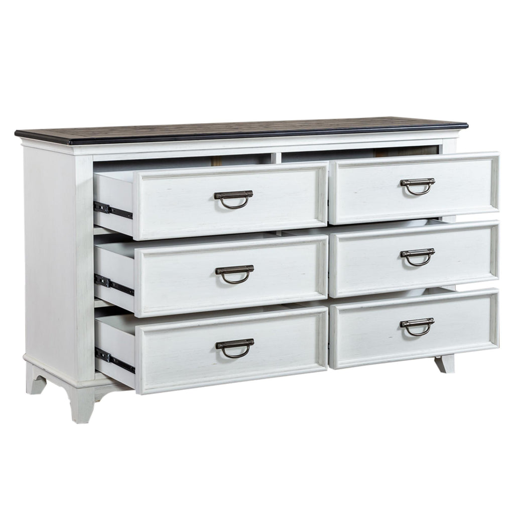 • Wirebrushed white finish w/ charcoal tops