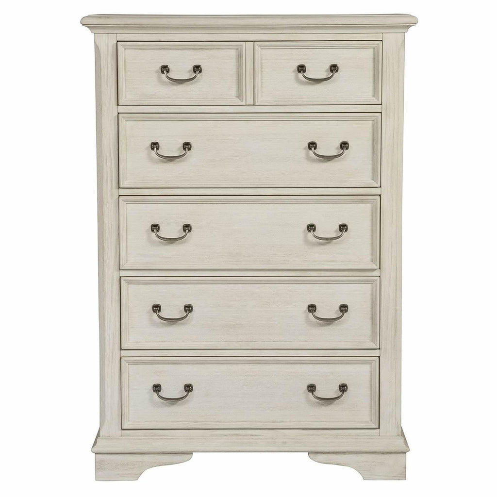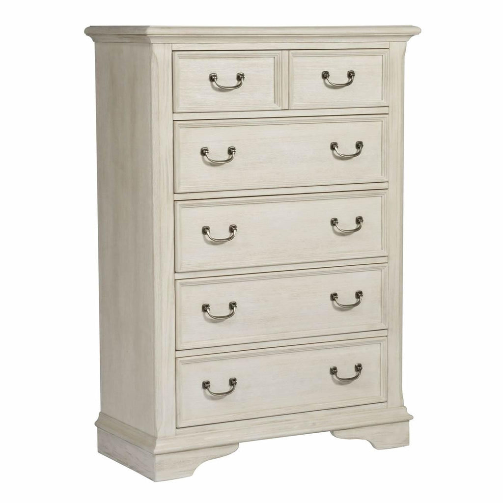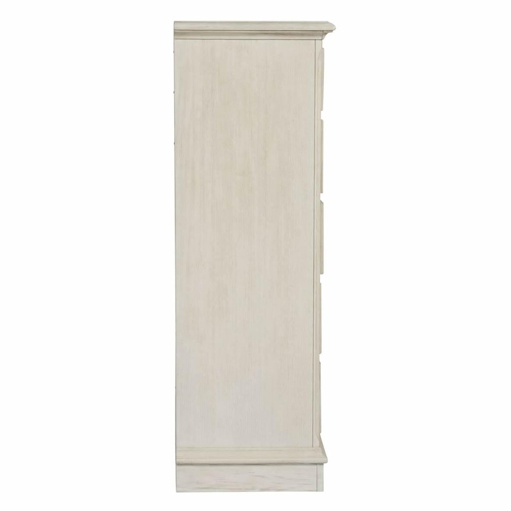 • Antique white finish with heavy wire brush