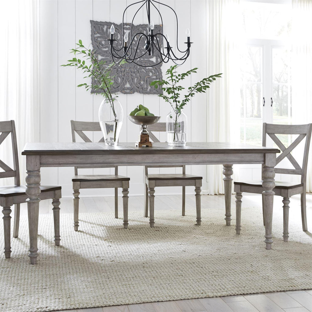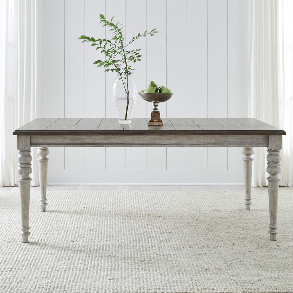 • Antique white finish with weathered gray tops