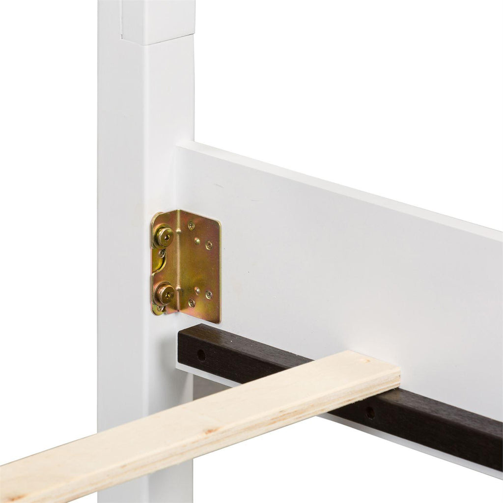 • Square post bed with round finials and slat overlays