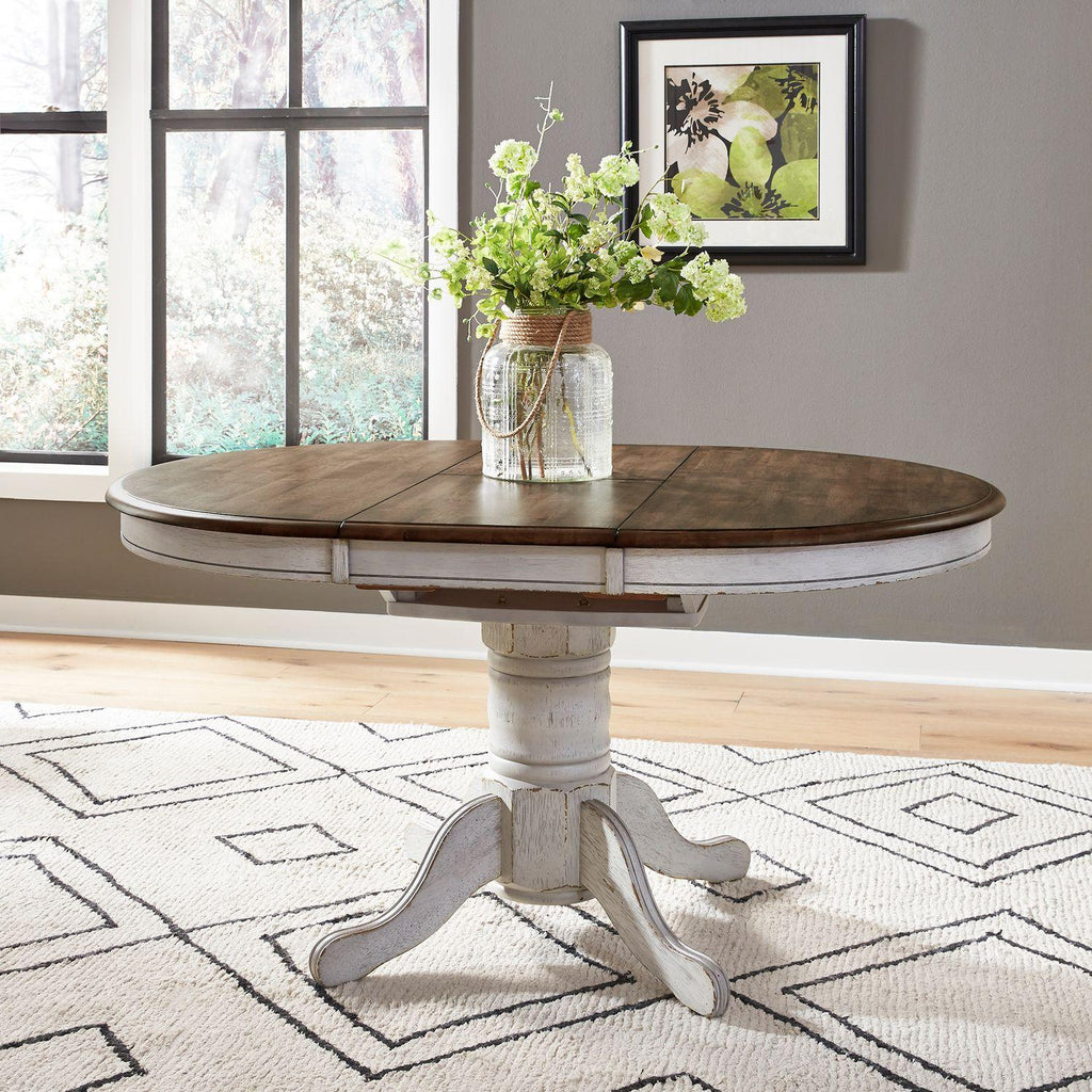 • Solid wood round to oval table