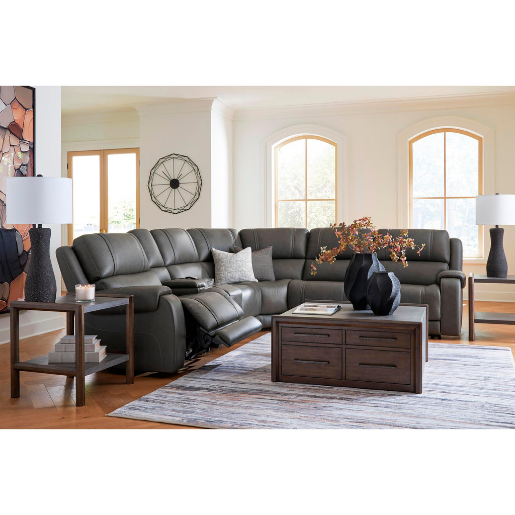 • Includes 6 modular pieces: left-arm facing power recliner, armless chair, power armless recliner, console with storage, wedge and right-arm facing power recliner