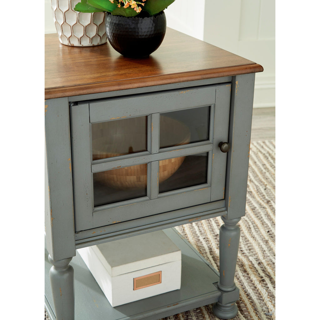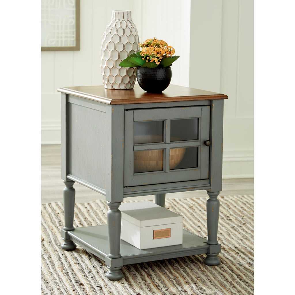 • Antique gray and brown finishes