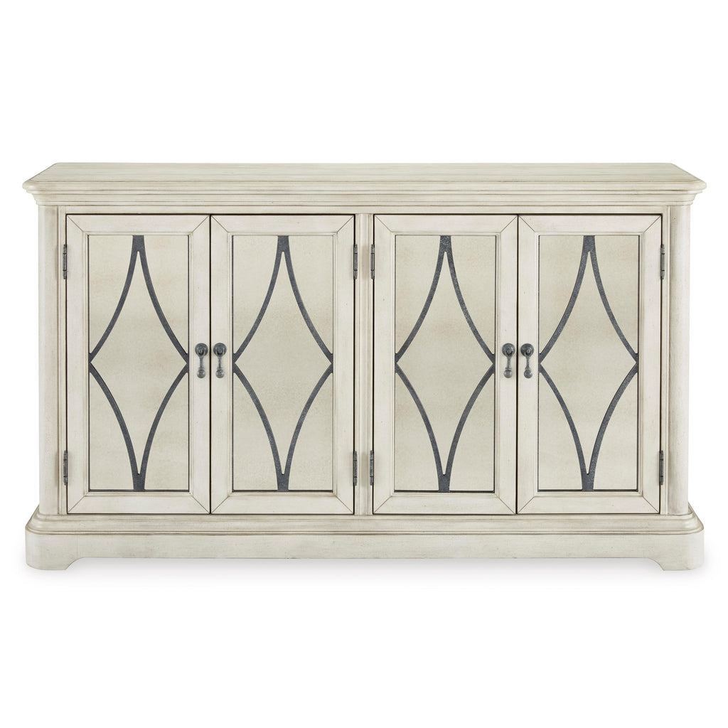 • Antiqued white painted finish