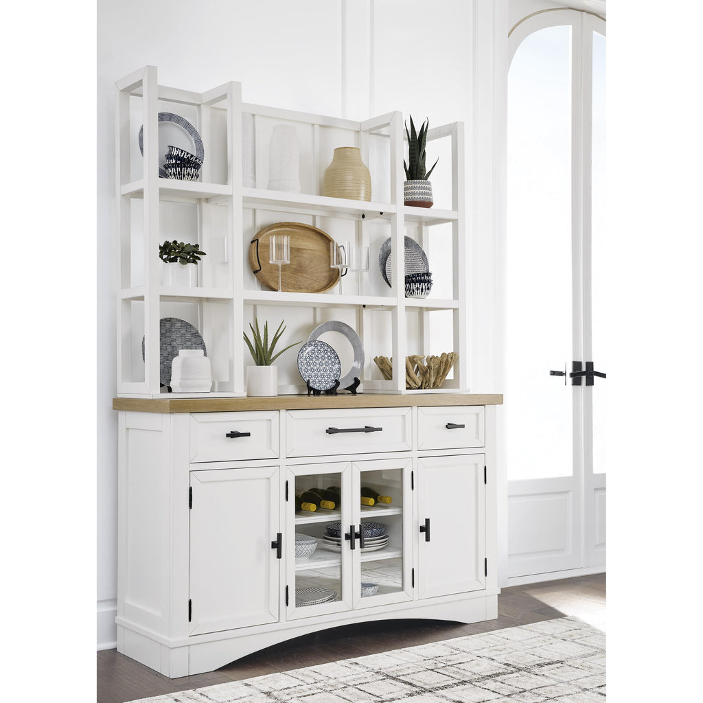 • Server with 2-tone finish (white finish; butcher block oak veneer top with natural finish)