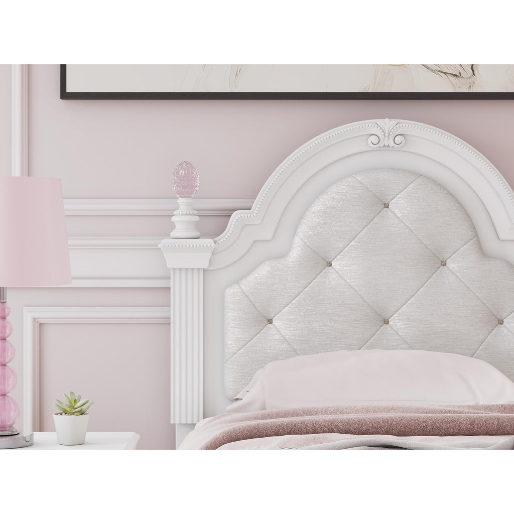 • Includes upholstered panel headboard, panel footboard and rails