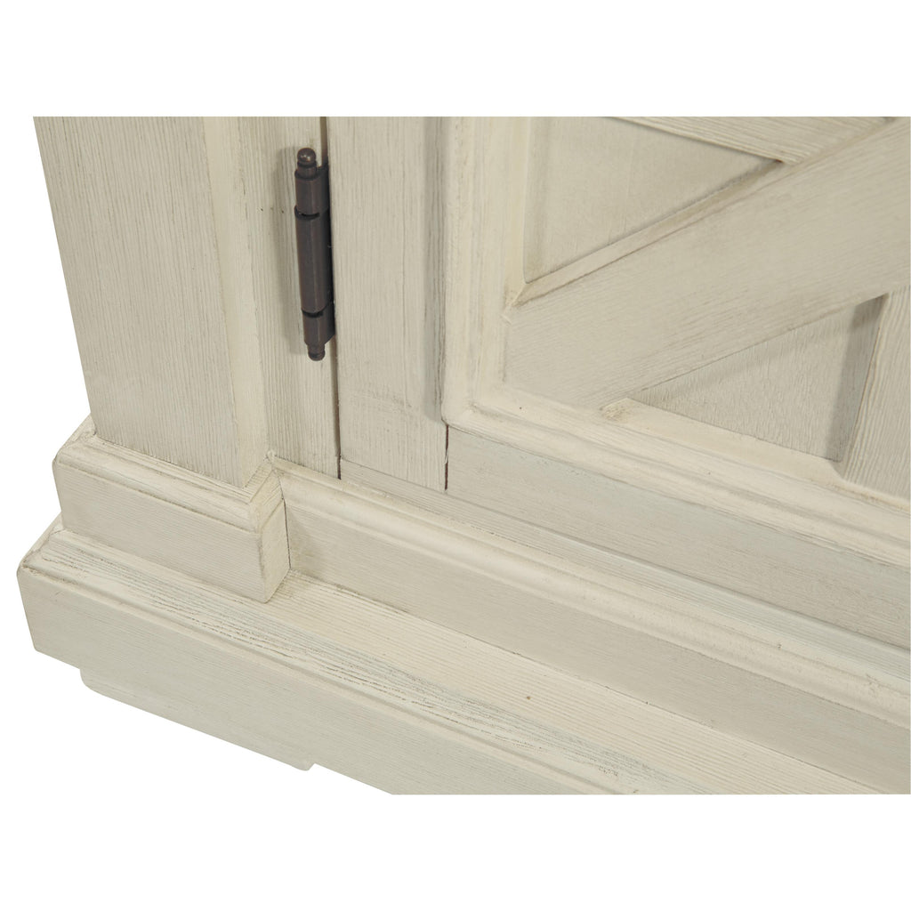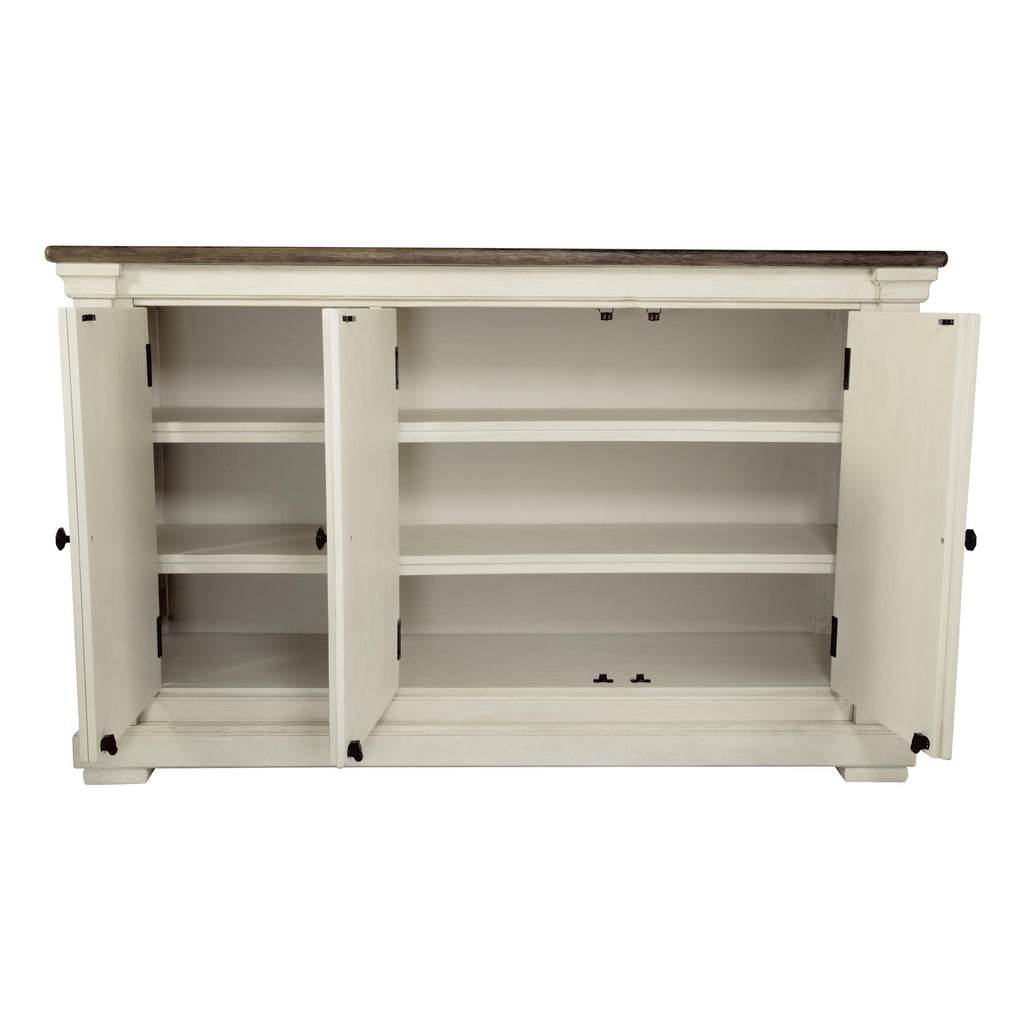 • Two-tone textural finish; weathered oak finished top and antiqued white finish throughout