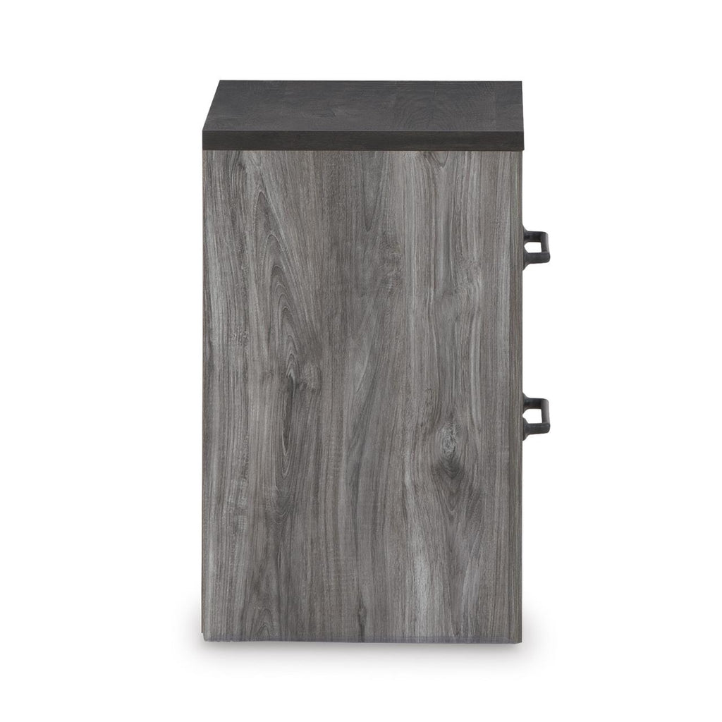 • Two-tone look: smoky gray replicated oak grain accented with rustic charcoal finish; replicated oak grain with authentic touch