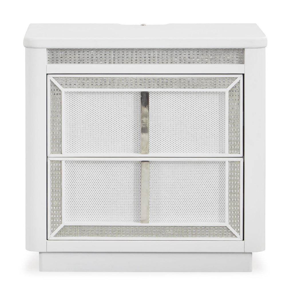 • Drawers with rhinestone frames; textured laminate drawer fronts