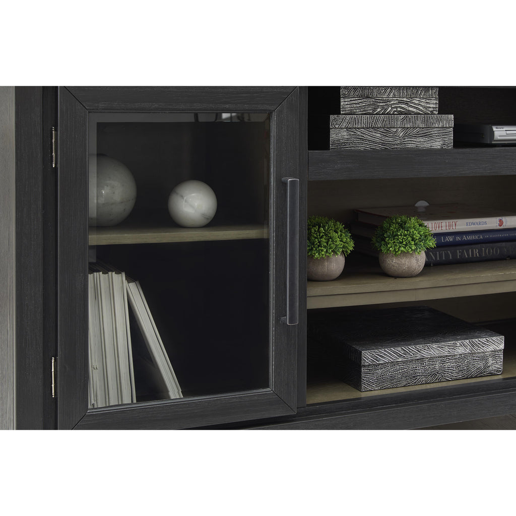 • 2 glass-front cabinets (each with an adjustable shelf)