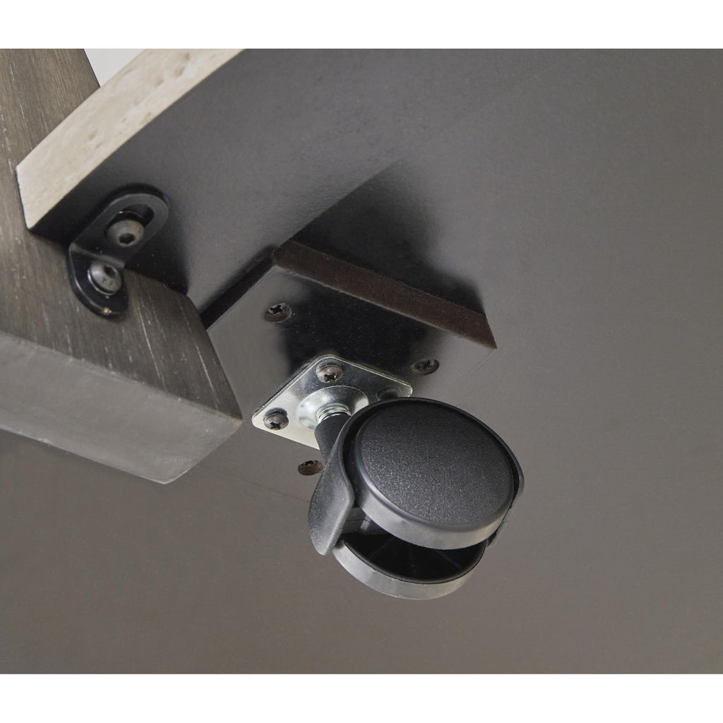 • Made with solid wood, faux travertine laminate with MDF substrate and metal