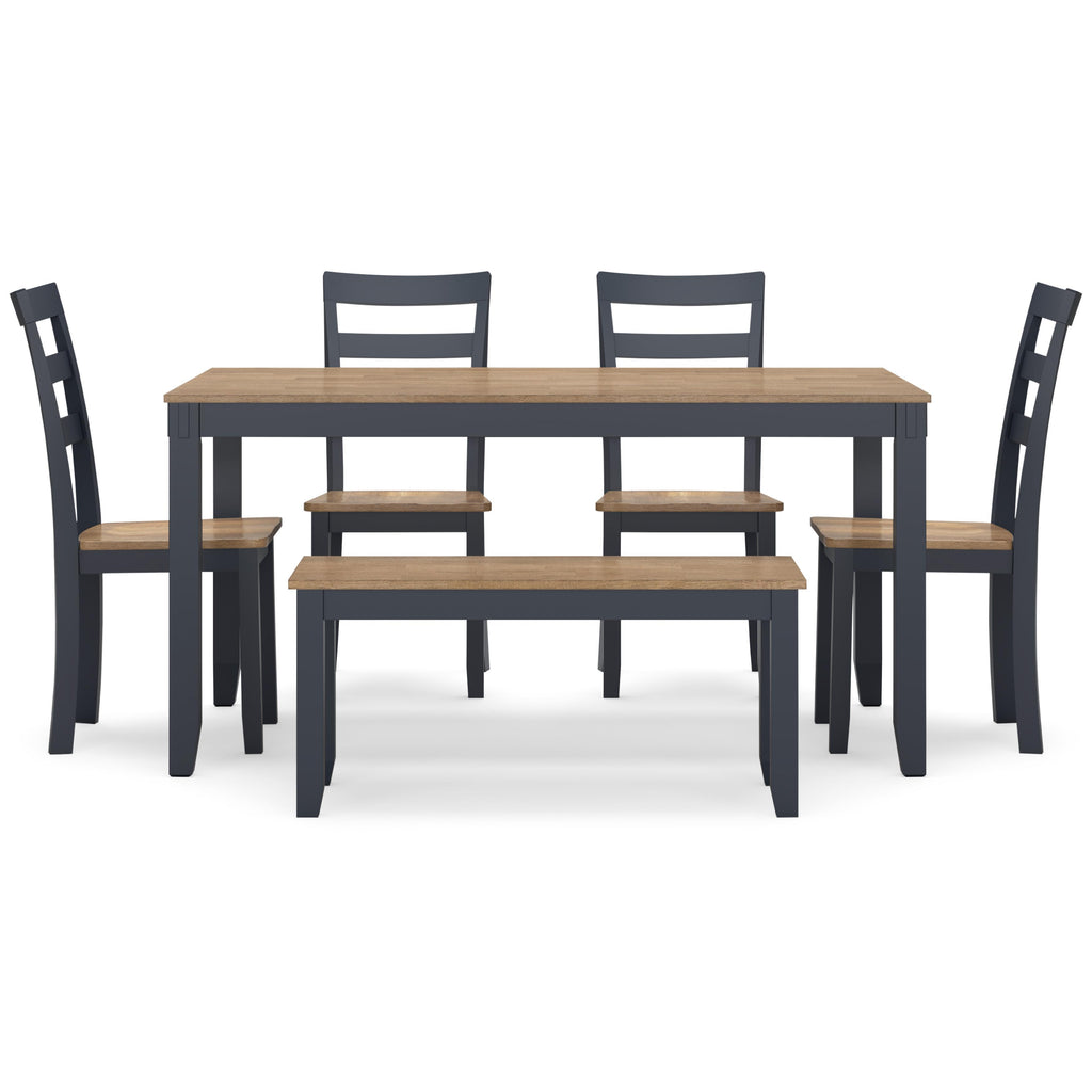 • Includes dining table, bench and 4 chairs