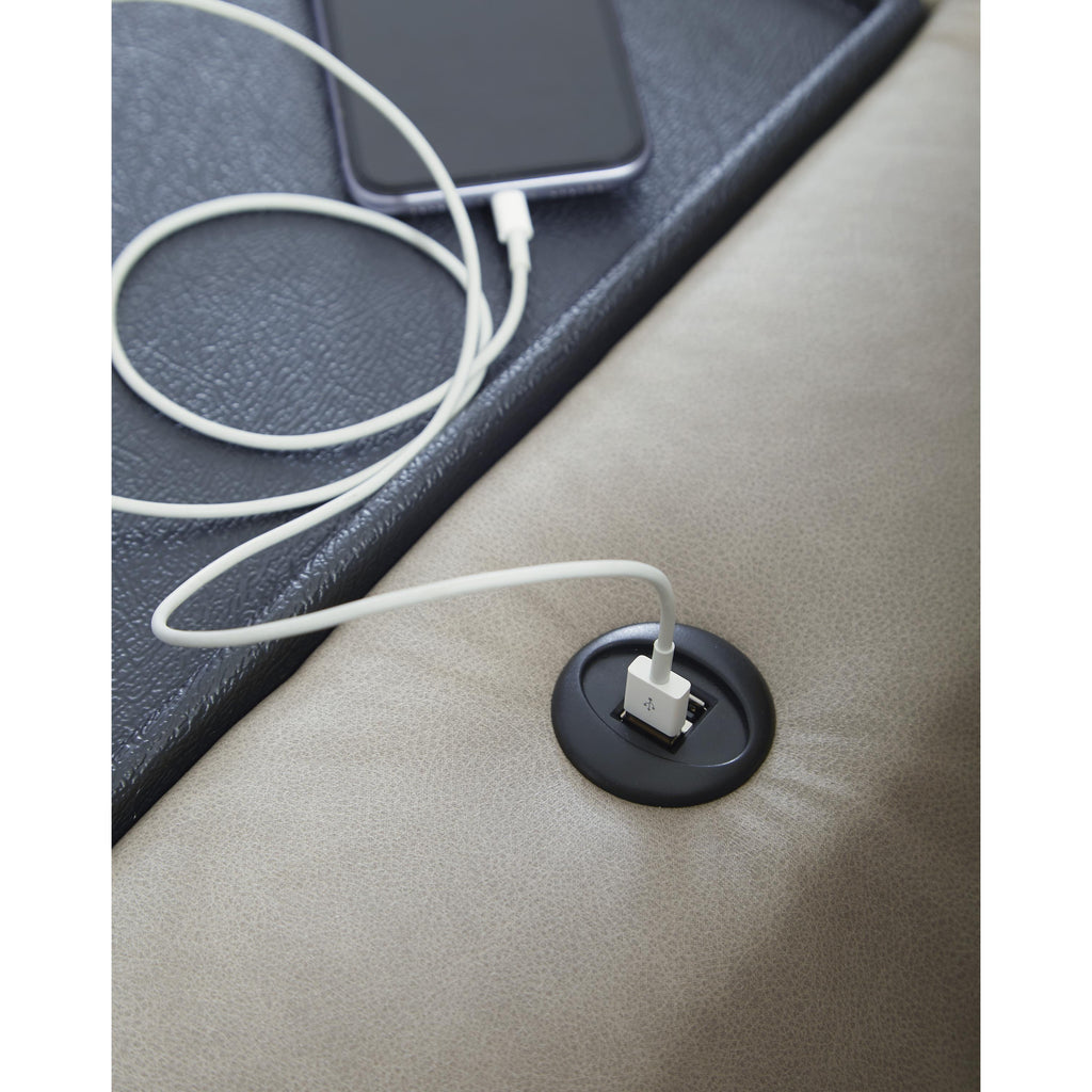 • Drop-down table with 2 cup holders and 2 USB charging ports