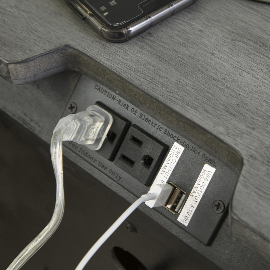 • 1 electrical outlet; 2 USB charging ports