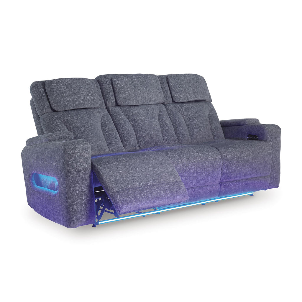 • Ambient blue LED lighting on base and storage cutouts for a theater-style experience