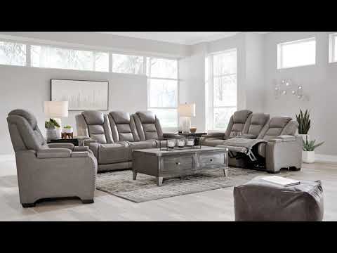 Signature Design by Ashley The Man-Den U8530515 Power Reclining Sofa with Adjustable Headrest