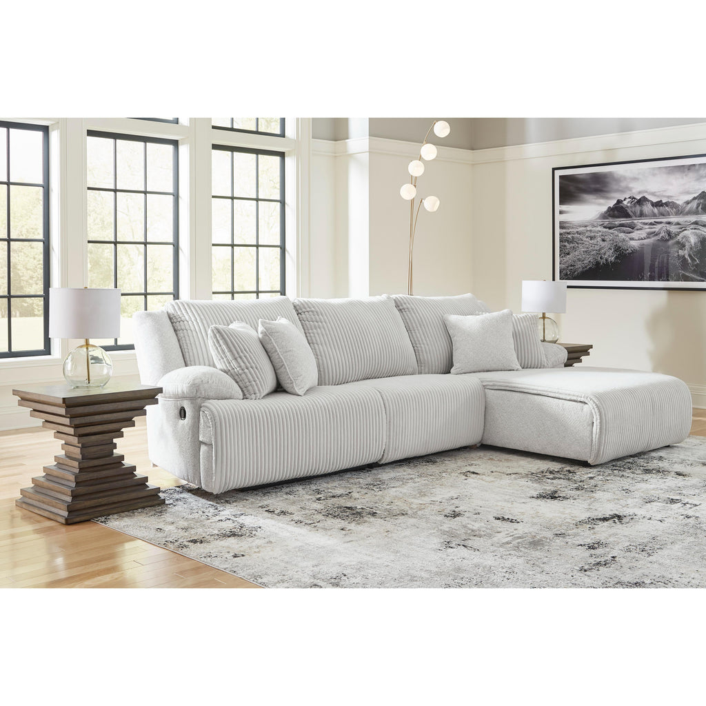 • Includes 3 pieces: left-arm facing recliner, armless chair and right-arm facing press back chaise