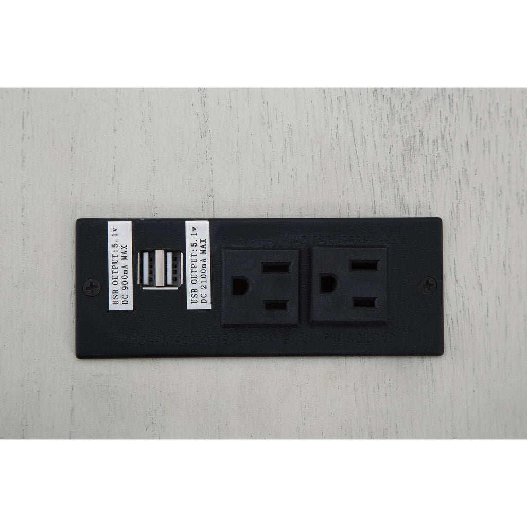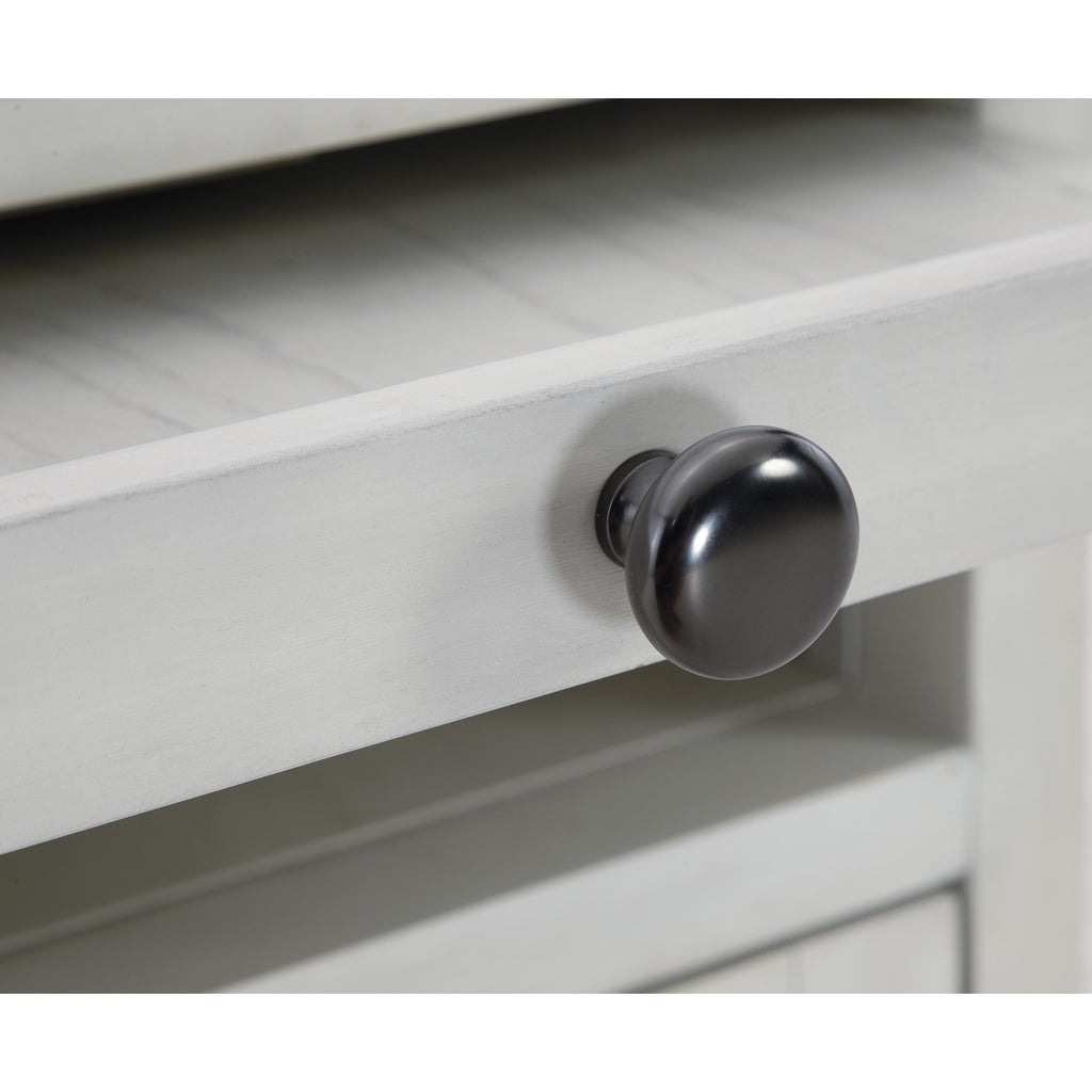 • Table features storage cabinet, open cubby shelf and pull-out tray