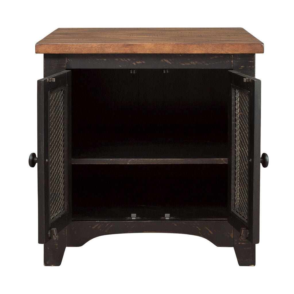 • Two-tone distressed finish (light brown top and rustic vintage black base)
