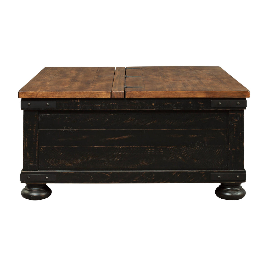 • Two-tone distressed finish (light brown top and rustic vintage black base)