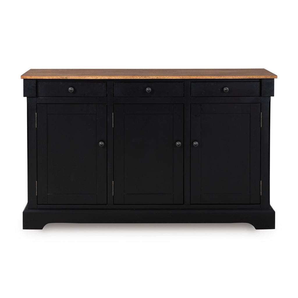 • Top with butcher block veneer pattern in deep brown wood tone finish