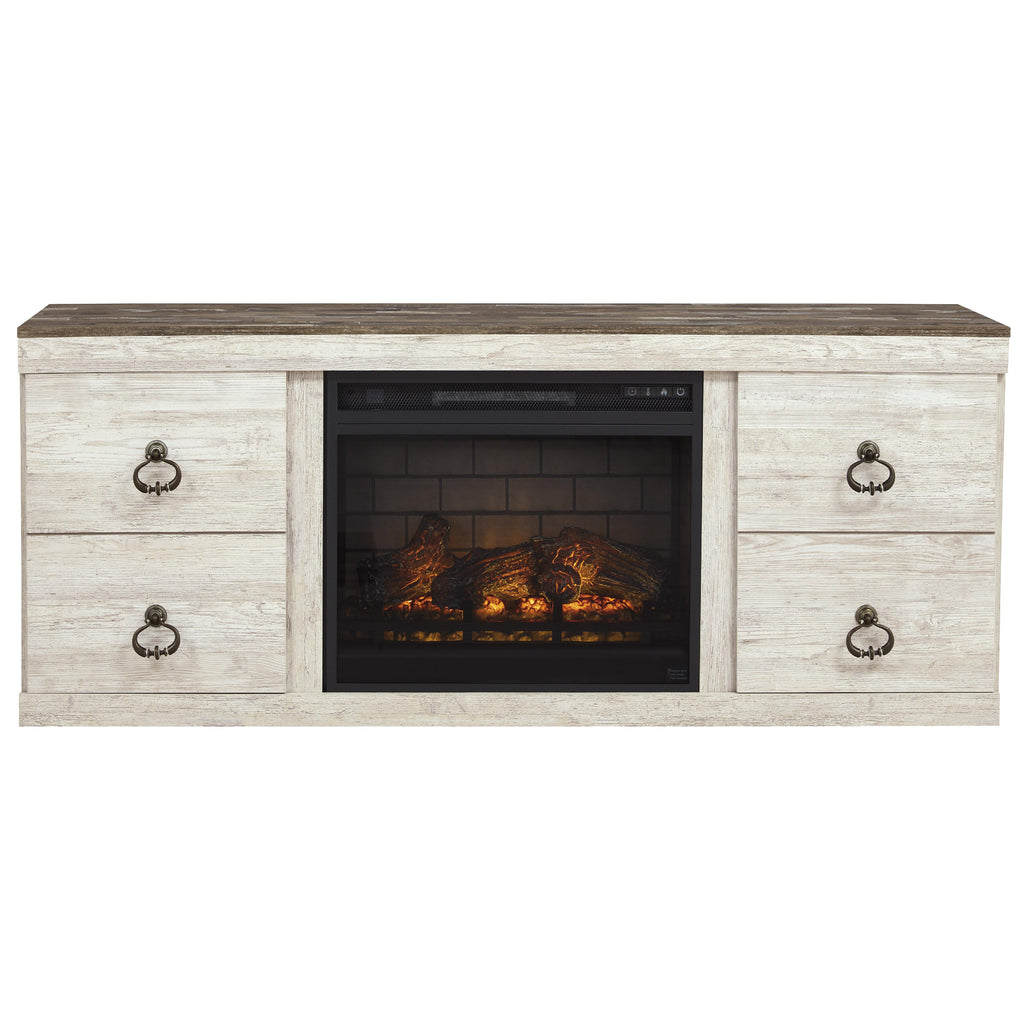 • Replicated white wash worn through paint; TV stand top with replicated wood grained block pattern with an authentic touch
